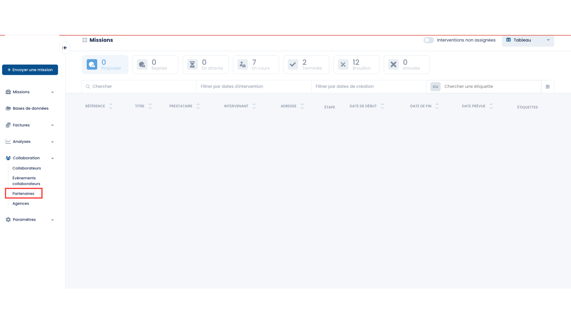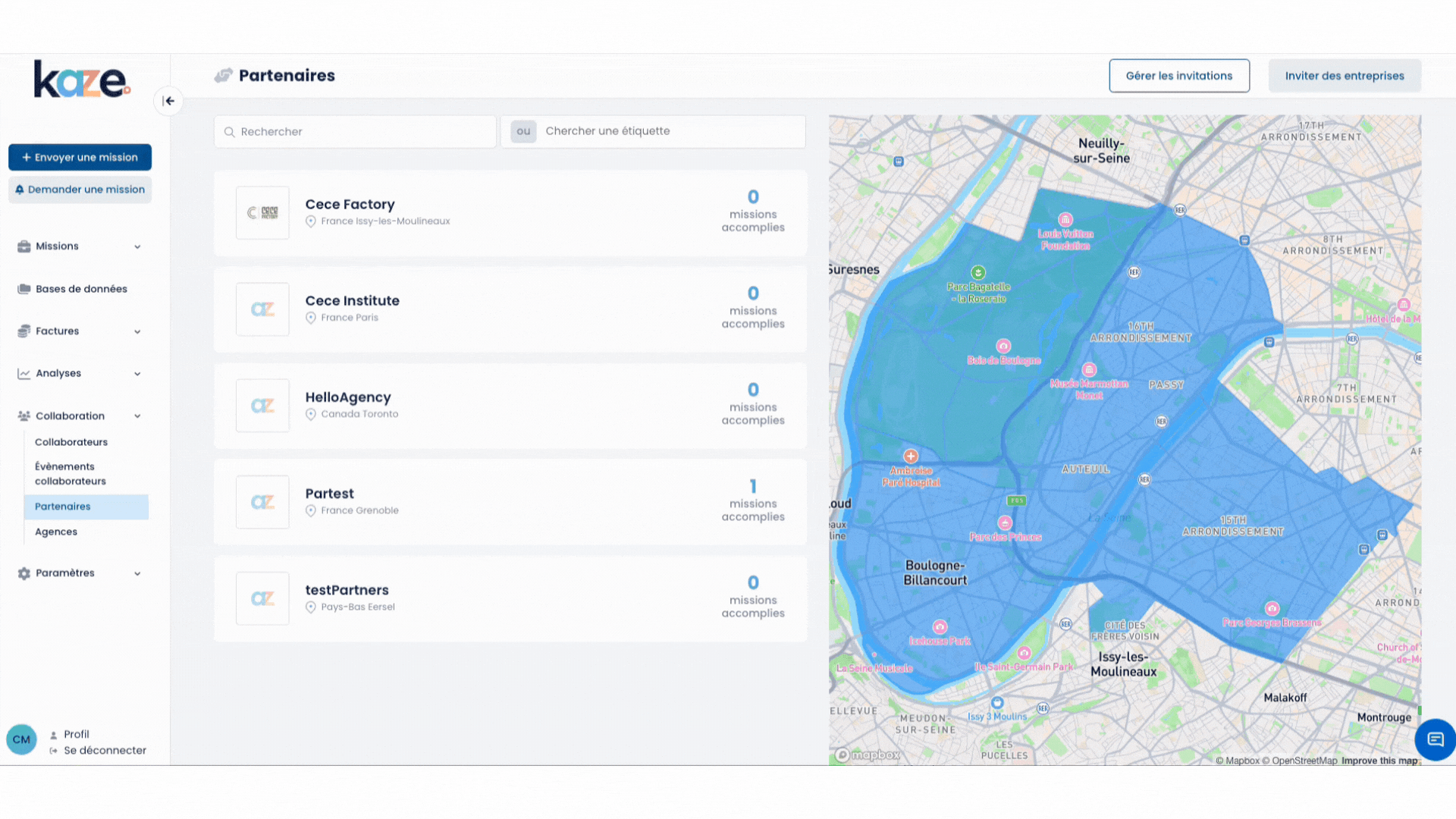 1. Sur Kaze, dans la barre de menu à gauche, cliquez sur "Collaboration" > "Partenaires"
